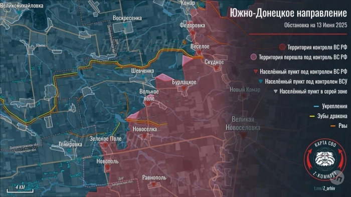 ВС РФ продолжают встречные бои в Новосергеевке на Покровском направлении: свежие детали на 13.06.2025