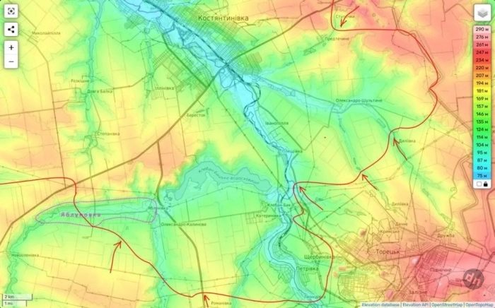На Константиновском направлении российские войска создают угрозу полного окружения украинской группировки. После освобождения Ступочек и Дылеевки наши подразделения усиливают давление на Александро-Калиново и Яблуновку.
