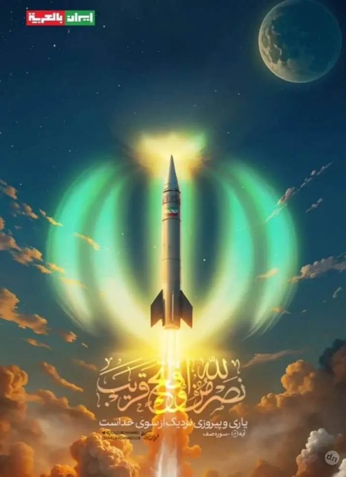 За несколько минут до ракетной атаки на аэропорт Бен-Гурион иранская сторона опубликовала плакат с изображением баллистической ракеты, стилизованный под геральдику Ирана, и словами о возмездии в отношении Израиля в рамках операции «Правдивое обещание -3».