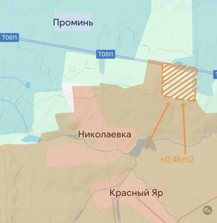 На Константиновском направлении российские войска расширили контроль территории западнее Курдюмовки, давят восточнее Дылеевки и в районе Озаряновки, продолжаются встречные бои. ВС РФ ведут штурмовые действия севернее Торецка в направлении восточной окраины Клебан-Быкского водохранилища и в районе Нелеповки. Продолжаются встречные бои на южной окраине Александро-Калиново и в Яблоневке.