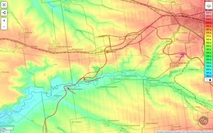 "Основной удар наши войска, очевидно, наносят с востока силами 51-й армии, которая постепенно сюда перегруппировалась практически всеми своими бригадами и начинает разворачивать наступление в тыл Покровско-Мирноградской группировки противника. На первом этапе она пытается выйти широким фронтом на реку Казёный Торец, в районе Новоторецкого и Владимировки. За последние несколько дней наши войска довольно серьёзно продвинулись к Новоторецкому и продвинулись к Владимировки, идут они довольно широким фронтом", - констатировал эксперт.