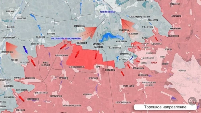 К западу от Торецка упорные бои в Яблоновке, Александро-Калиново и Нелеповке. Бои у восточного берега Клебан-Быкского водохранилища - важный узел, успех там отрежет противнику дороги на Константиновку.
