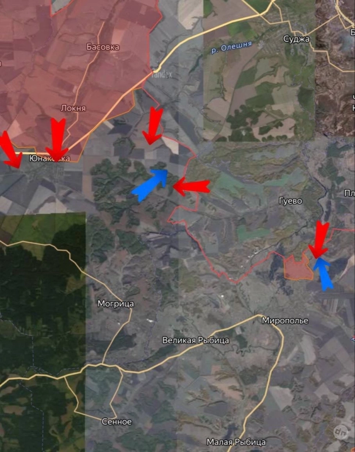 Одновременно подразделениями группировки ведутся боевые действия в Запорожской области, а также на территории Донецкой народной республики. По данным Минобороны России, совокупные потери украинской армии за последние сутки на всех трёх участках фронта составили более 210 военнослужащих.