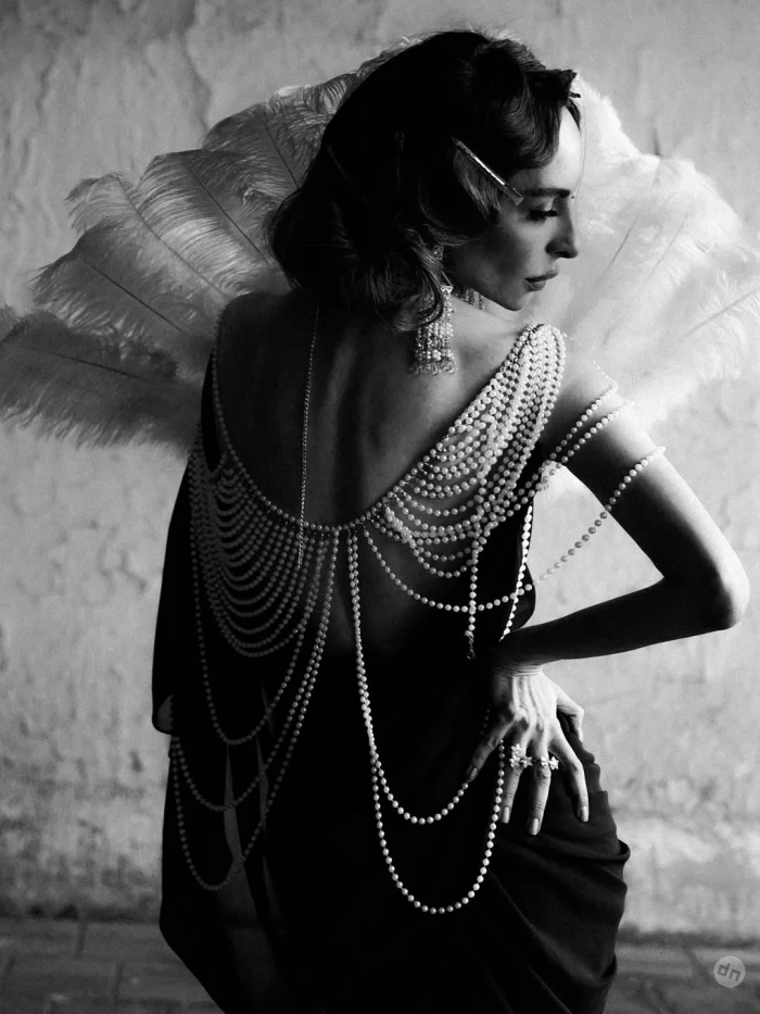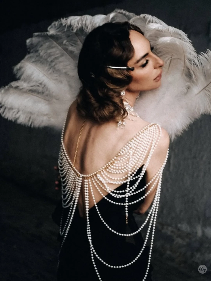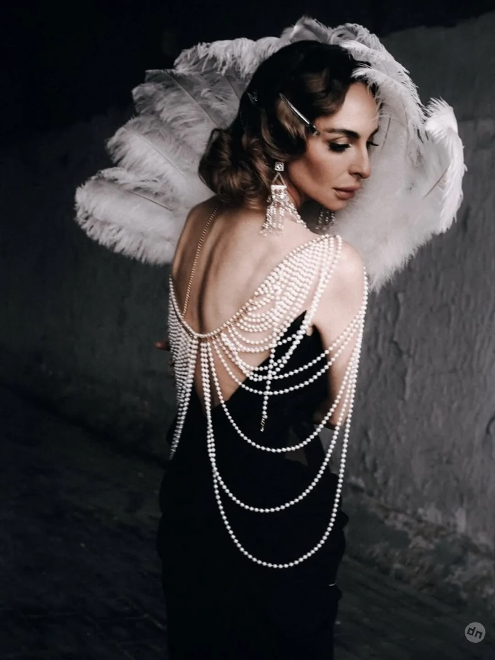 Екатерина Варнава снялась в новой фотосессии в стиле старого Голливуда. 40-летняя актриса опубликовала снимки в соцсетях, на которых она позирует в чёрном платье Say No More с глубоким декольте и украшениях Dzhanelli. Образ екатерины дополняет веер из перьев и укладка в стиле 1930-х.