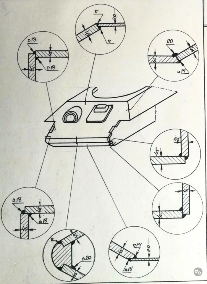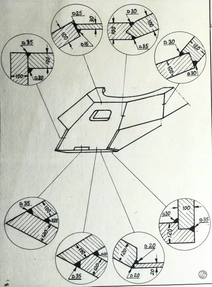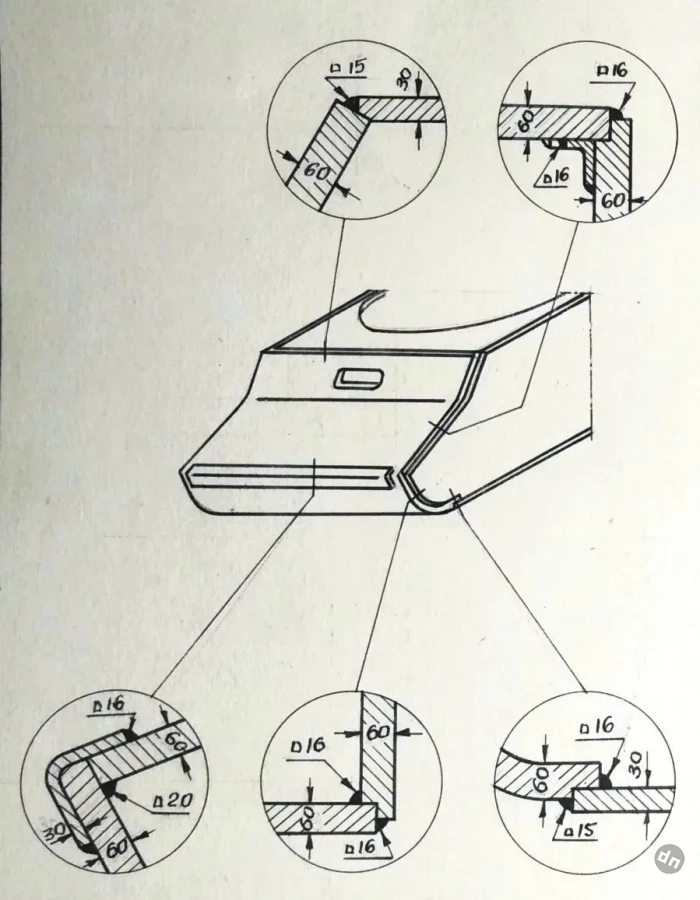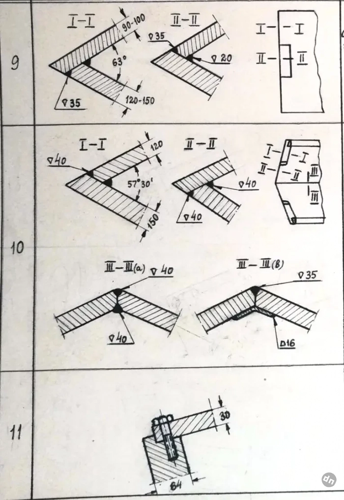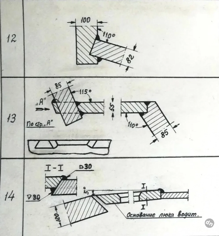8. Соединение днища корпуса с бортовыми кормовыми деталями показывают хорошую прочность и живучесть при соединении в четверть, в шип, в распор и нахлестку, сваренных качественными электродами.