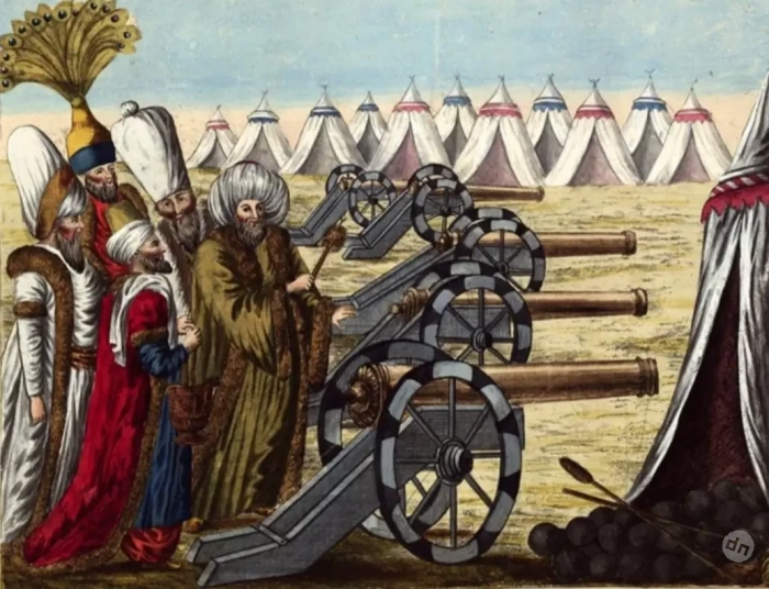 В центре, вместе с султаном, стояли янычары и артиллерийские части.