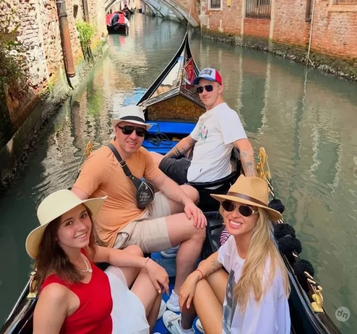 На снимке запечатлены Галиевы и Валиева с Нестеровым во время отдыха в Венеции. Фигуристка сидит на гондоле рядом с Никитой и улыбается. Также телеграм-канал "Тулуп Тутберидзе" выкладывал совместное фото пары во время прогулки: на снимке они идут, держась за руки.