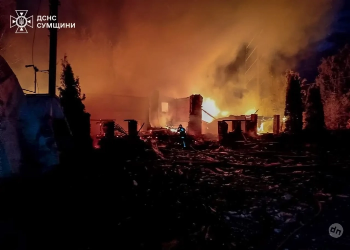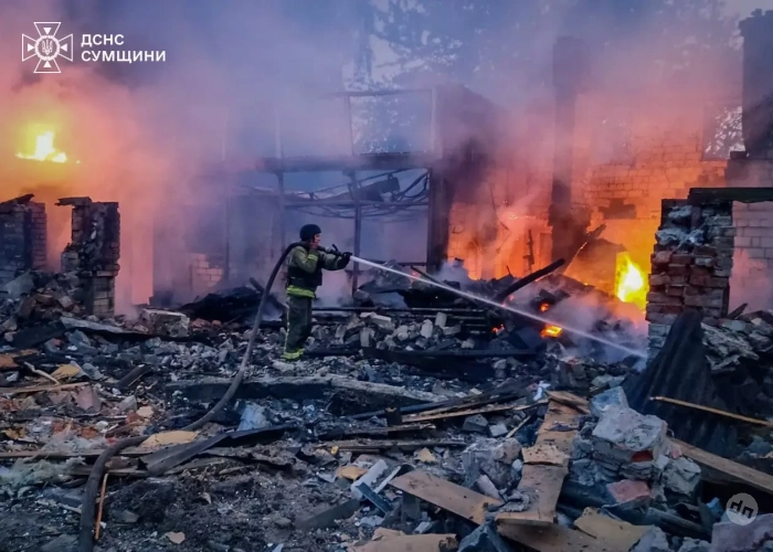 На опубликованных украинской Государственной службой чрезвычайных ситуаций снимках видны сильные разрушения и пожар на месте прилётов.