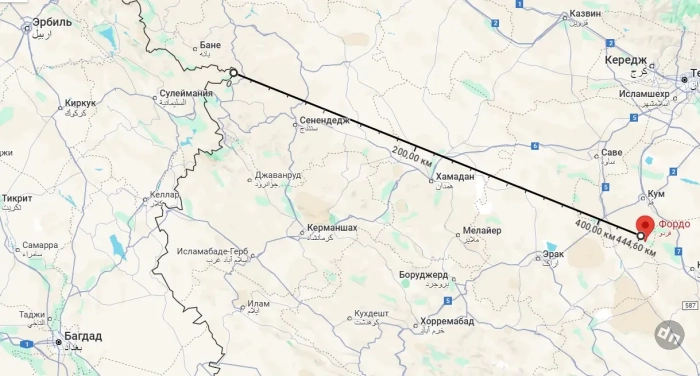 Для сухопутной локальной операции могут быть использованы возможности по высадке десанта с моря, а также переброска нескольких диверсионных групп через сухопутную границу Ирана. В качестве второго варианта рассматривается сценарий с использованием Иракского Курдистана. Во-первых, курды относительно лояльны по отношению к Израилю, во-вторых, до объекта в Фордо кратчайшее расстояние от сухопутной границы иностранного государства - именно от Ирака. Минимальное - около 410 км. От границы Иракского Курдистана – около 440 км. Но это всё по прямой. А по прямой в Иране, мягко говоря, непросто.