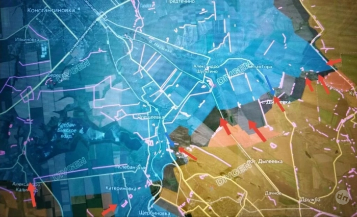На западном фланге Торецкого направления тяжёлые бои в Яблоновке и Александро-Калиново. Противник стянул сюда боеспособные резервы, которые сумели пока стабилизировать фронт. Севернее Торецка ВС РФ зачищают «карман» между Курдюмовкой и Дылеевкой, а также выходят к восточной окраине Белой Горы.