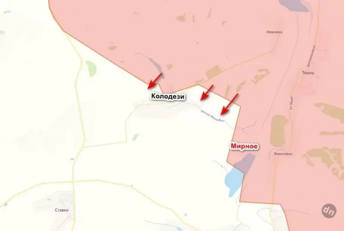 Село Мирное, вернее, его развалины, находится под контролем российских войск уже довольно длительное время, а вот Колодези нам взять пока не удается, хотя попытки предпринимаются постоянно. Противник превратил населённый пункт в мощный укрепрайон и отступать пока не намерен. Взятие этого села открывает нам путь на село Ставки, используемое противником в качестве промежуточного логистического хаба, а за ним уже Красный Лиман. Взятие же Лимана открывает дорогу на Славянско-Краматорскую агломерацию с северного направления.