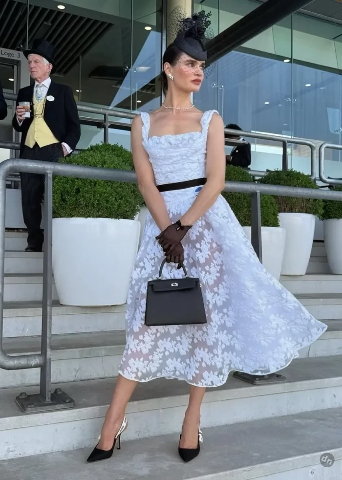 На снимках Татьяна, которая воспитывает четверых детей от водочного магната, купившего долю Анджелины Джоли в её с Брэдом Питтом поместье Château Miraval, позирует в белом кружевном платье, туфлях Dior и с сумкой Hermes. Модель дополнила образ чёрными перчатками, шляпой с вуалью и ювелирными украшениями.