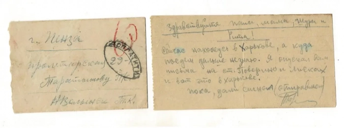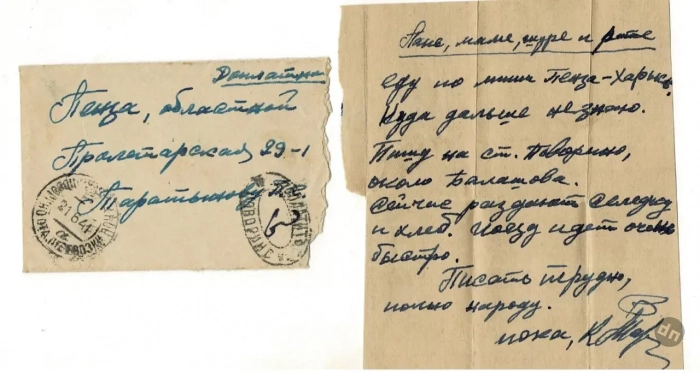 Итак, вот первое письмо, отправленное в совершенно крошечном конверте 90Х60 мм, и написанное карандашом. Оно не очень информативно. Но для родителей Кости и это была радость, да еще какая