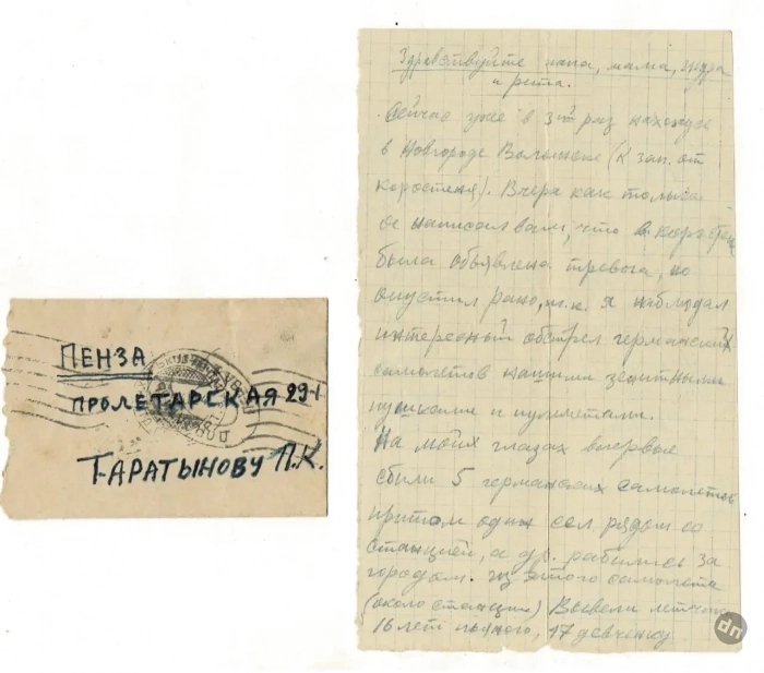 «Ещё меня в этом письме насторожил термин "германцы". Из тех фронтовиков, кого я знал, противника всегда называли немцы, иной раз фрицы или гансы. Германцами — никогда. Особенность пензенских призывников, может быть? И с Ю-87 лаптёжником тоже нестыковка. Никогда его у нас "штукой" не называли. Вообще. То есть к исходному документу масса вопросов».