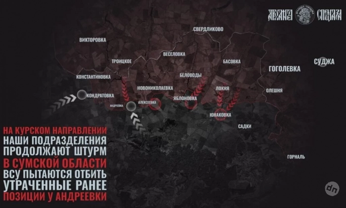 На Сумском направлении ВС РФ отбили несколько атак на Тёткино и Новый Путь в Курской области. В Сумской по линии Кондратовка – Алексеевка - Юнаковка за сутки враг предпринял до 20 контратак. ВСУ стягивают сюда резервы, используют артиллерию и дроны чтобы сбить темпы наступления ВС РФ. Тем не менее, под контролем ВС РФ уже до половины Юнаковки, есть продвижение восточнее села, в районе Садков.