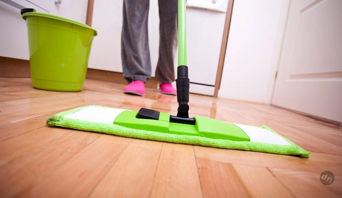 «Лучше всего — плоские швабры из микрофибры и распыление минимального количества средства. Если пол остаётся влажным через пару минут — протрите его сухой тканью», — объясняет Дерек Кристиан, совладелец All Star Cleaning.