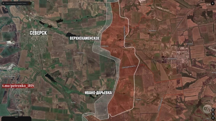 На северском направлении (ДНР) российские войска продвинулись широким фронтом на участке площадью до 26.2 км² и закрепились в центральной части Верхнекаменского.