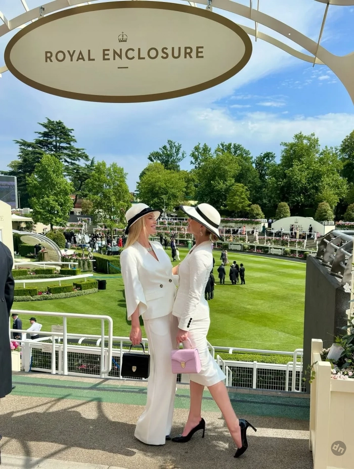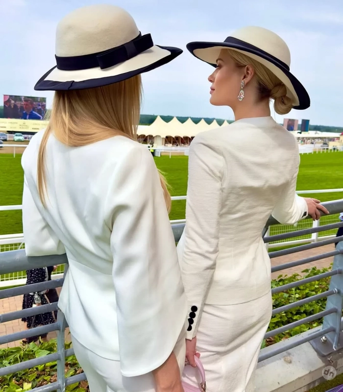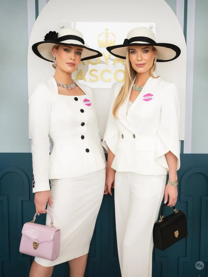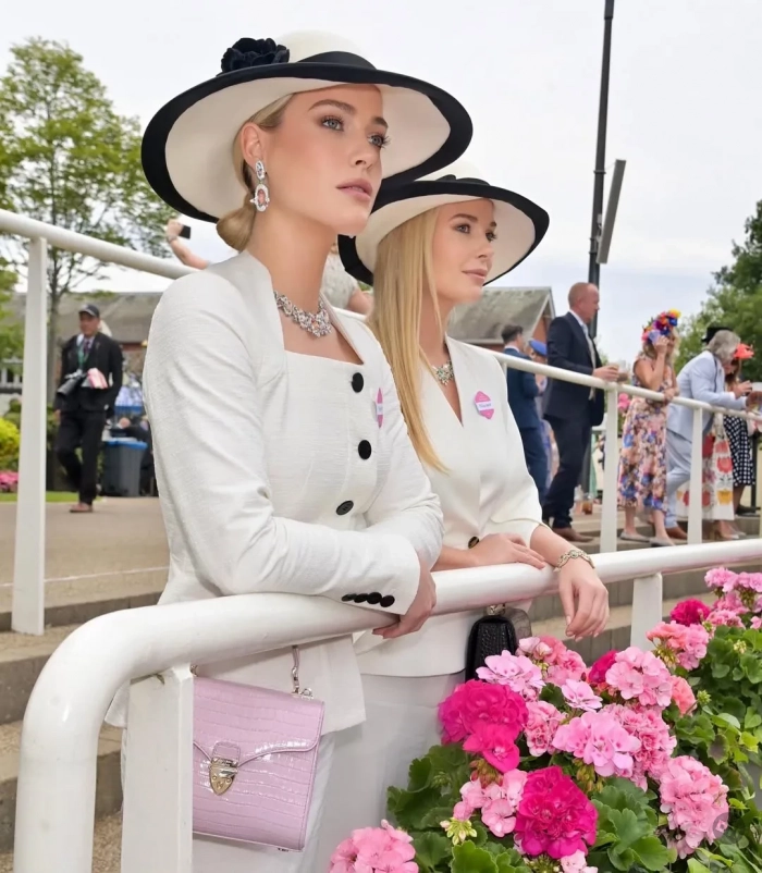 32-летние сёстры-близнецы, племянницы принцессы Дианы и кузины принцев Уильяма и Гарри, позировали на ипподроме Аскот в белых костюмах британского бренда The Fold, украшениях Chatila и одинаковых шляпках. Леди Амелия надела юбку-карандаш с жакетом и уложила волосы в пучок, а леди Элиза выбрала брюки и оставила волосы распущенными.