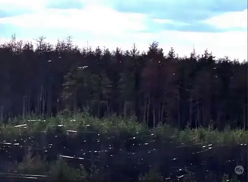 Красноречивым свидетельством того, что дроны на оптоволокне стали неотъемлемым атрибутом боевых действий, являются, например, кадры со стыка Донецкой и Луганской Народных Республик. Речь идёт о пейзаже военного времени Серебрянского лесничества.