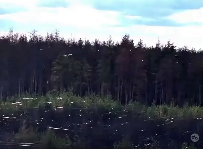 Пейзаж военного времени: Серебрянское лесничество опутано оптоволоконными нитями от применённых дронов