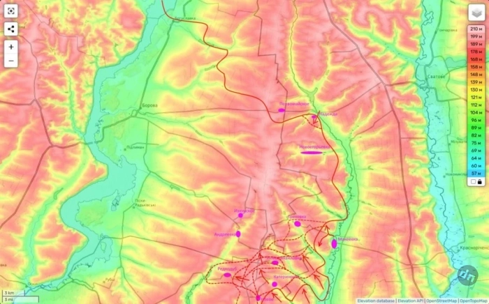 В частности, по данным Юрия Подоляки, российские бойцы продолжают охватывать Купянск с севера. Накануне ВС России заняли важный холм между населёнными пунктами Голубовка и Радиковка.
