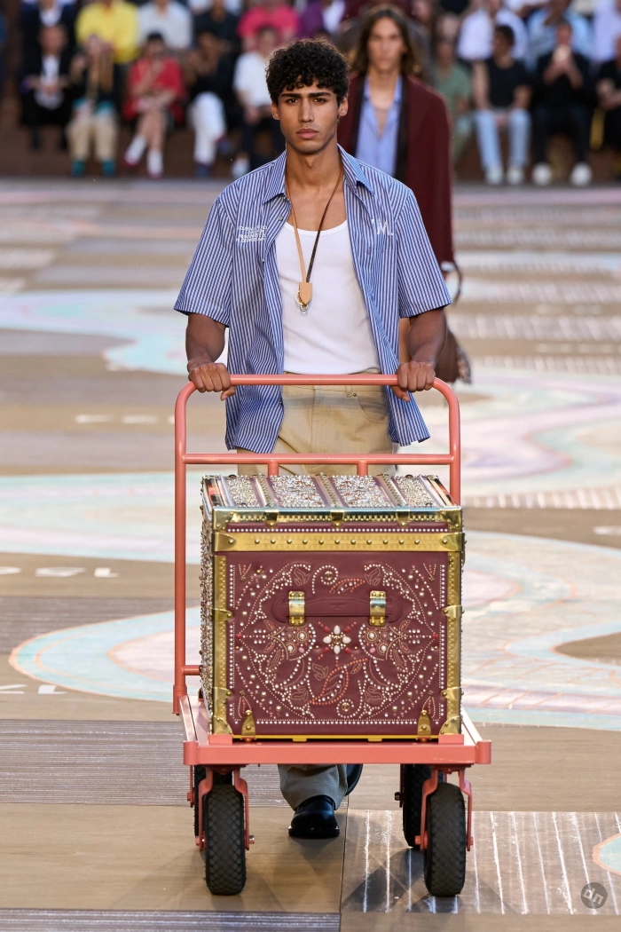 Джей-Зи и БейонсеДжей-Зи и БейонсеБейонсеБейонсеБрэдли КуперБрэдли КуперОмар СиСпайк Ли и Тоня Льюис ЛиСпайк ЛиАнок ЯйFutureA$AP NastПоказ летней мужской коллекции Louis Vuitton прошёл в парижском центре искусств и культуры Помпиду. На её создание 52-летнего Фаррелла Уильямса вдохновила поездка в Индию. Модели выходили на подиум в образах с принтами пальм, антилоп, зебр и других животных, в пуховиках с вышивкой бисером и драгоценными камнями, а ярким акцентом в коллекции стали сумки в виде лягушек и с анималистичными принтами.
