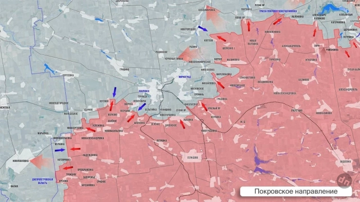 На Покровском фронте ВС РФ без суеты продвигаются западнее Орехово и Котляровки на Новопавловку. Наши бойцы заняли несколько лесополок и выбивают противника из опорников западнее. В Муравке идут бои на восточной окраине, наши части обходят село с юго-запада. Севернее Новосергеевки штурмовики окончательно зачистили позиции на высотах и установили практически полный контроль над Новосергеевкой и прилегающими территориями. В Удачном ВС РФ ожесточённо прогрызают оборону врага, севернее села продвинулись до 600 м. На восточном фланге идут бои западнее Мирного, Коптево и в районе Новоэкономического.