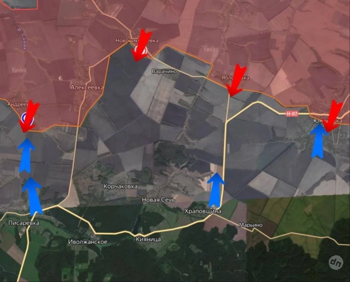 На Сумском направлении армия Российской Федерации практически полностью освободила село Юнаковка. Продвижение составило+4,3 км2. Более 30 солдат элитного британского взвода ВСУ уничтожили наши войска в результате этого сражения. Враг пытается вернуть Андреевку, контратакуя наши позиции. Наши дроны находят и поражают вражеские группы. Из Храповщины в сторону Яблоновки противник атаковал на танке. Российские солдаты подбили его при отступлении.