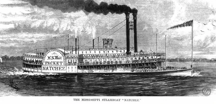 А это его постоянный конкурент, пароход «Натчез». Обе гравюры относятся к 1870 году