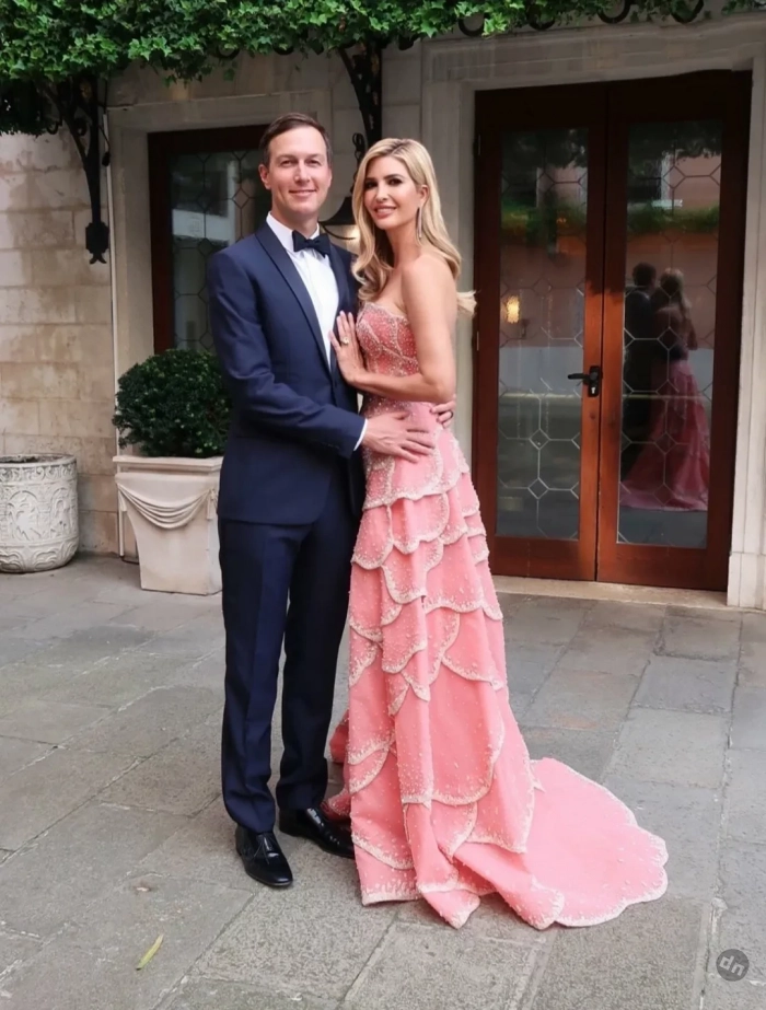 Так, прилетела в Венецию, чтобы поздравить брачующихся, старшая дочь президента США Дональда Трампа, 43-летняя Иванка. Компанию ей составили муж Джаред Кушнер и дети. В своих соцсетях Иванка уже показала часть своих образов для торжества: розовое мини-платье Oscar de la Renta с отделкой в виде цветов и продолжающее цветочную тему, но более элегантное платье Tony Ward без рукавов и с длинным разрезом.