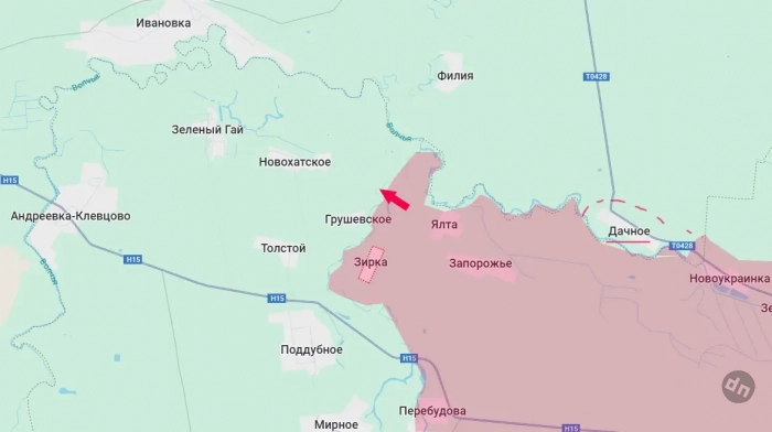 Появляются сообщения о взятии под контроль ВС РФ первого населённого пункта в Днепропетровской области - села Дачное