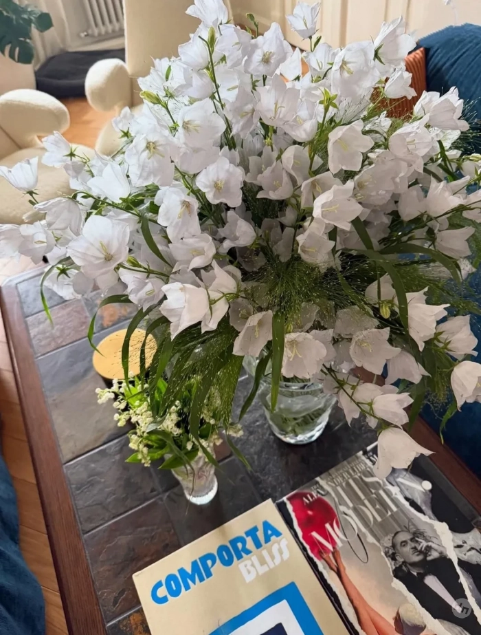 На снимках можно увидеть саму Ксению в свадебном платье Prada, а также букет невесты вблизи и (частично) праздничный стол. Фотографию жениха Соловьёва в подборку не включила.