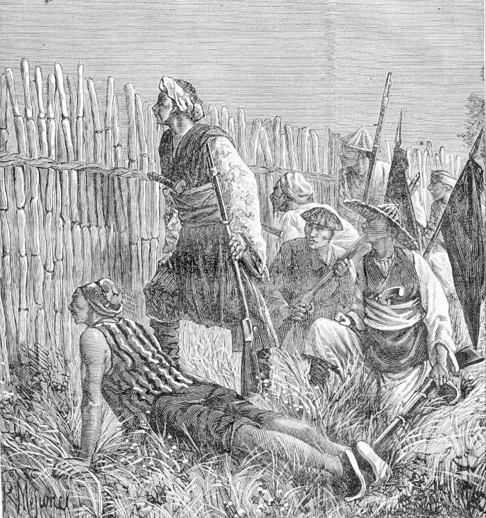 Надо сказать, что некоторые вьетнамские чиновники, понимая, что их армия стоит недорого, использовали имеющих огромный боевой опыт бойцов «чёрных флагов» в качестве инструкторов для собственного ополчения. Существование в стране двух сил, не сильно любящих друг друга, заставило вьетнамские власти просить императора вывести из Вьетнама китайский контингент, но согласия на это получено не было. И часть вьетнамского двора стала с симпатией посматривать на французов, которые были врагами китайцам...