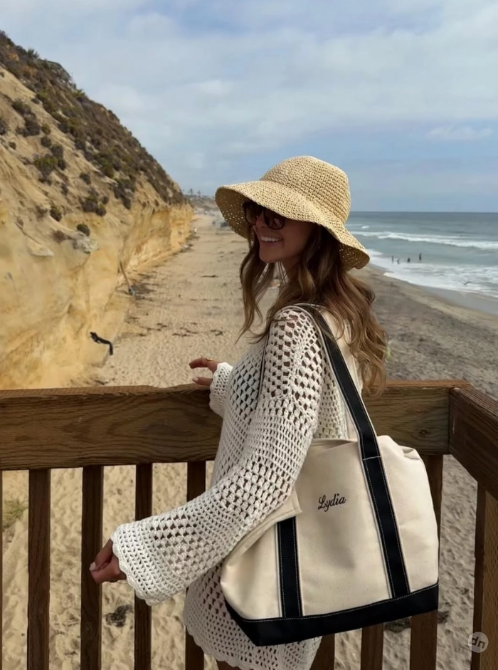 Универсальный герой любого гардероба. Легко стирается, не жалко испачкать, при этом выдерживает вес пляжного набора. В минималистичном стиле и спокойных оттенках выглядит особенно стильно.