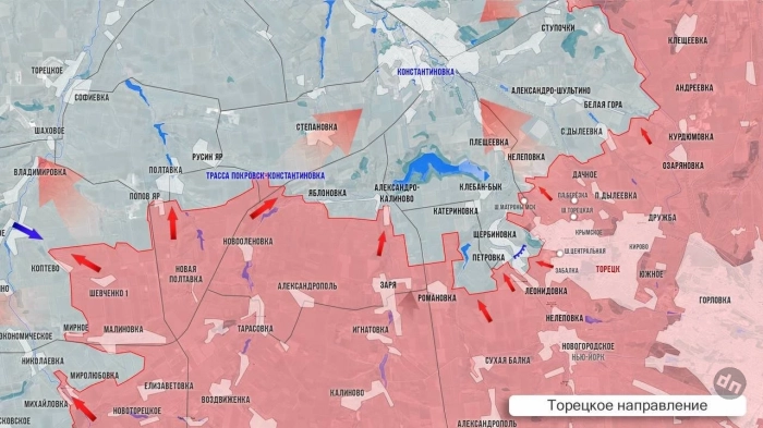 На западном фланге Торецкого направления активизировались бои на рубеже Полтавка - Попов Яр. В Яблоновке бои идут в центре. К северу от Торецка бои в непосредственной близости от Белой Горы. Одновременно наши части пробиваются в сторону Александро-Шультино, сообщает в своём Telegram-канале Олег Царёв.