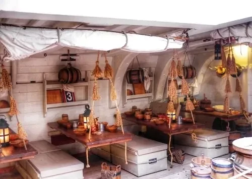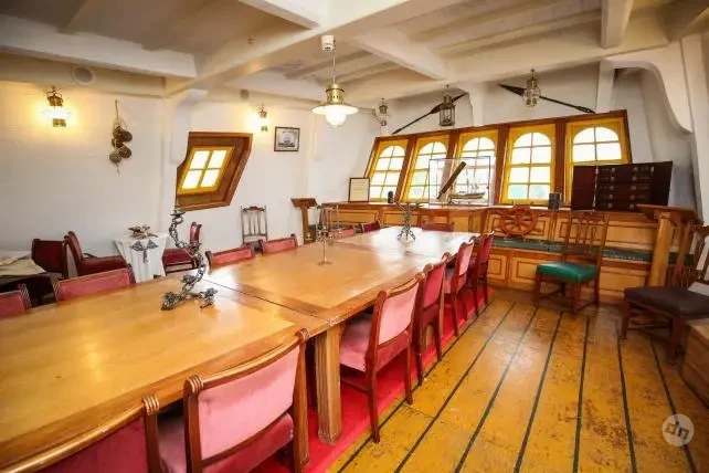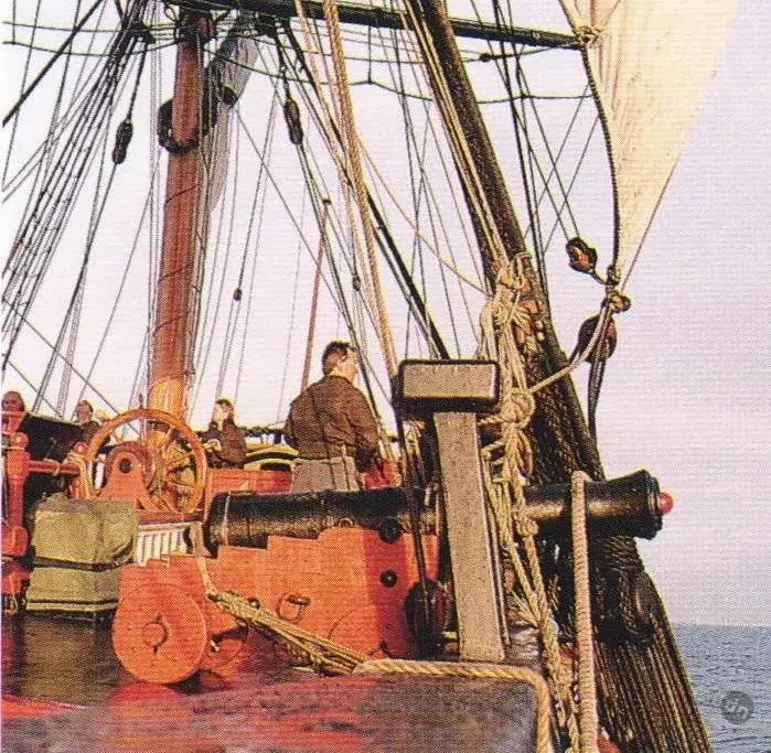 Огромное внимание было уделено отделке внутренних помещений, при этом стремились придерживаться оригинала. Для этого кузнецам пришлось выковать более 30 подвесных светильников, а резцам по дереву изготовить необходимые резные панели. Мебель и все текстильные изделия были изготовлены вручную в стиле 18-го столетия. На палубе установили копии оригинальных пушек, которые в нужные моменты могли даже производить холостые выстрелы.