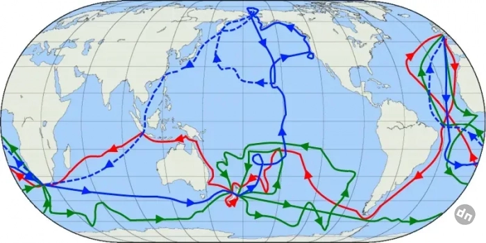Три путешествия Д. Кука. Красный - маршрут «Индевора»