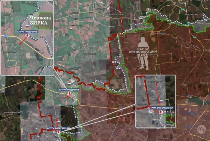 Продвижение армии РФ подтверждается сразу на нескольких участках: бои идут в районе Юнаковки, Алексеевки, Яблоновки и Андреевки. В районе Поддубного и Воскресенки уже заявлено о фактическом контроле со стороны российских подразделений. Характер наступления говорит о том, что украинская сторона теряет возможности для стабилизации ситуации: впереди открытая местность, в которой крайне сложно удерживать оборону.