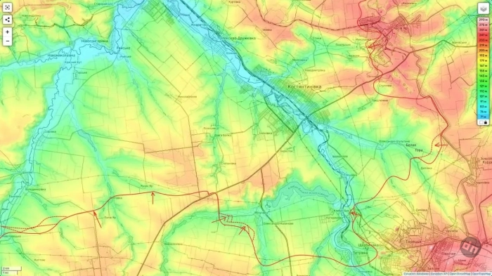 Также военный блогер осветил обстановку на Константиновском направлении. Южнее Константиновки не прекращаются ожесточённые бои в Яблуновке и на подступах к Александро-Калиново.