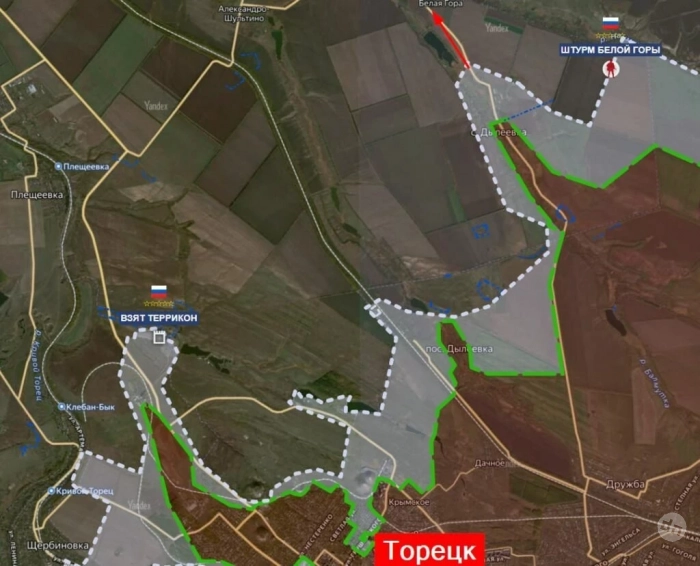 На Торецком направлении идёт жёсткое сражение за Яблоновку, оборона противника проседает. Бои в Александро-Калиново. Севернее шахты Матроны Московской и у Белой Горы - продвижение Вооружённых сил Российской Федерации (ВС РФ).