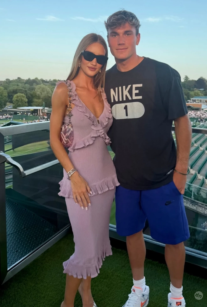 Рози пришла на турнир в тотал-луке Burberry в лиловых оттенках и дополнила образ тёмными солнцезащитными очками. Звезда "Трансформеров" наблюдала за игрой с ВИП-трибуны, а после встретилась с 23-летним теннисистом Джеком Дрейпером.