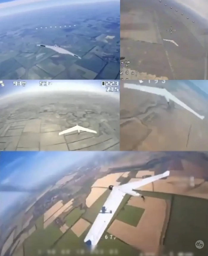 Кадры из видео успешных и неуспешных атак украинских FPV-перехватчиков на российские разведывательные БПЛА самолётного типа