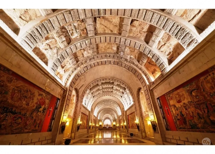 С эспланады площадью 30,6 тыс. м² огромная богато украшенная бронзовая дверь ведет в вырубленную в скале базилику Санта-Крус-дель-Валле-де-лос-Каидос длиною 262 метра, а ее максимальная высота достигает 42 метров.