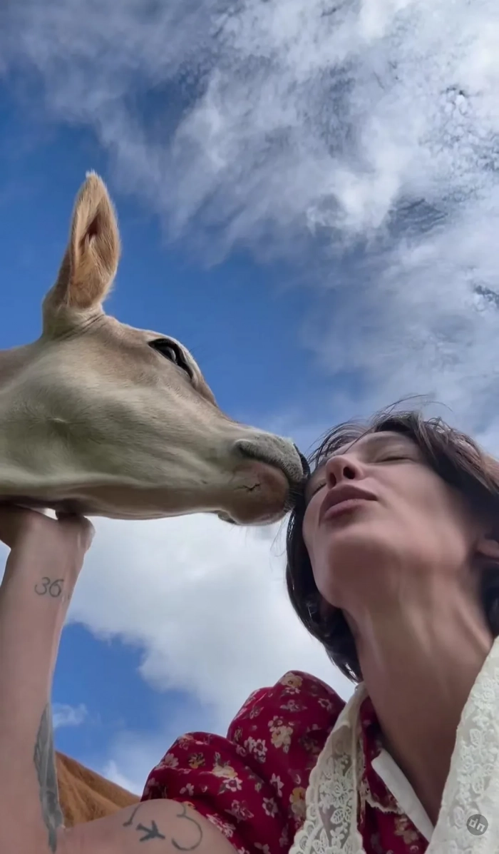 В своих соцсетях 34-летняя блогерша опубликовала новое видео: в нём можно увидеть, как она ухаживает за скотом, полет грядки, устанавливает пугало, едет на тракторе и целуется с супругом в поле среди цветов. Филипп, судя по кадрам, активно участвует вместе с возлюбленной во всех её сельских экспериментах.
