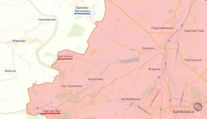 Также отмечается продвижение южнее - в районе Григоровки. Этот населенный пункт расположен немного северо-восточнее Часова Яра. Согласно данным к началу сегодняшнего дня, здесь российские военные продвинулись вперед на 200 метров на 400-метровом участке фронта. Нашим бойцам приходится с большим трудом отвоевывать чуть ли не каждый метр.