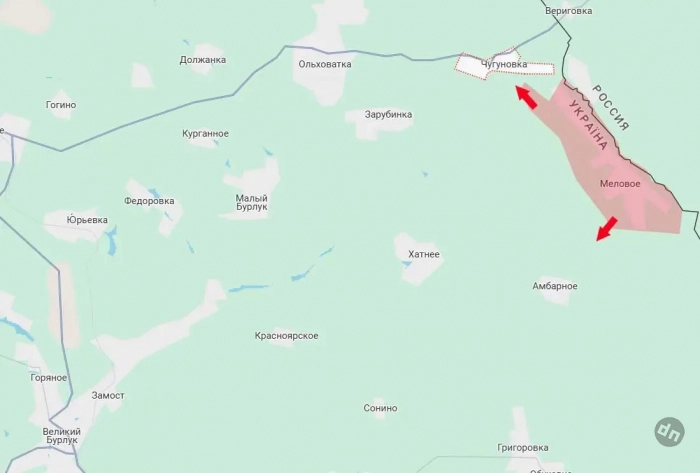По поступающим с фронта данным, российские штурмовые отряды подошли к селу Чугуновка в том же Купянском районе, что и само Меловое. Чугуновка – небольшое село, в котором, по сути, одна улица, частный сектор. На территории Чугуновки – когда-то действовавший пограничный переход.