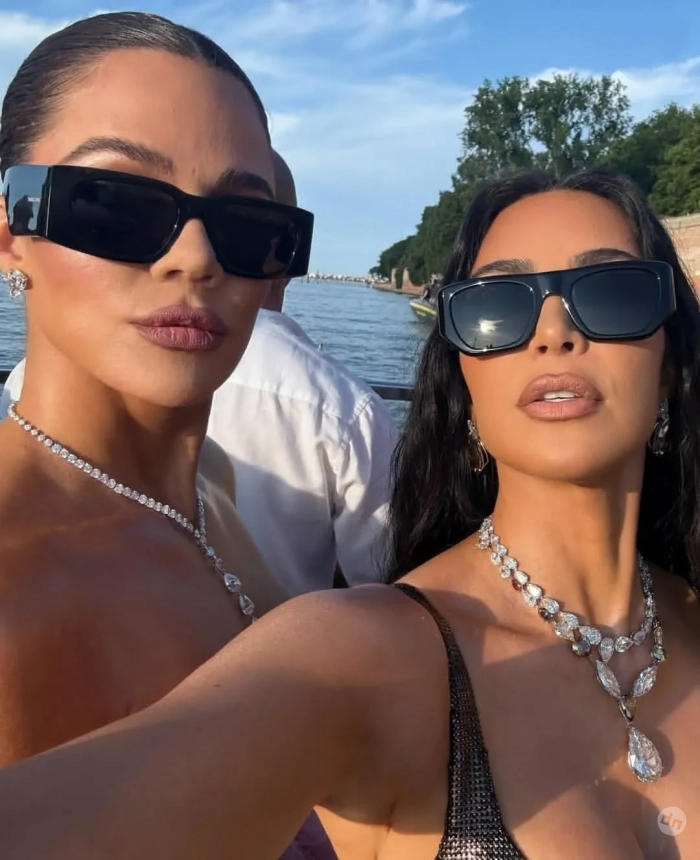 На днях 44-летняя Ким Кардашьян опубликовала в соцсетях фотографии со свадьбы Лорен Санчес и миллиардера Джеффа Безоса, где она была одной из приглашённых. Поклонников звезды особенно заинтересовали украшения на её шее.