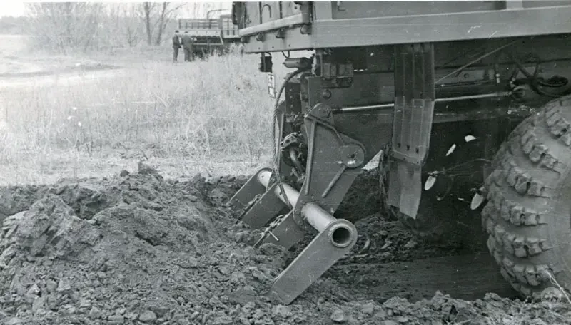 Решено было не толкать перед собой отвал, а тянуть специальное землеройное оборудование. Предполагалось, что тягово-сцепные свойства колесного движителя вкупе с мощными моторами обеспечат необходимое усилие для снятия слоя грунта. В 1969 году совместным решением Министерства автомобильной промышленности и войсковой части 52694 была утверждена тема 5567-1 «Разработка навесного автомобильного оборудования для отрытия котлованов и самоокапывания одиночного автомобиля». Но еще раньше – в 1967 году – ЦК КПСС и Совет Министров СССР выпустили постановление № 37-10, которое очертило общие контуры будущей работы. Техническими деталями и требованиями к самоокапывателям колесной техники занимались в 21-м НИИ в Бронницах.