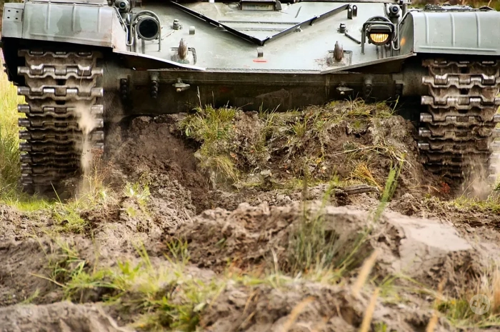 Из разряда сугубо механических средств защиты от ядерного взрыва можно назвать системы самоокапывания. На танках этот узел реализован с виду достаточно просто – 200-килограммовый отвал шириной два с небольшим метра размещался на нижнем лобовом листе корпуса. Из походного положения он переходил в рабочее за пару минут и обеспечивал рытье капонира за 40 минут. Капонир представляет собой углубление длиной 12 метров, шириной 5,5 метров и глубиной в полтора метра. В итоге получалось укрытие, которое не только снижало действие ударной волны, но и маскировало танк. Система самоокапывания имеет некоторые ограничения – запрещается работать на мёрзлом и каменистом грунте, а также на участках с валунами, пнями, кирпичной кладкой и прочими препятствиями.