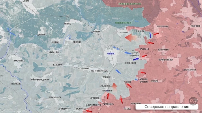 На Северском направлении наши подразделения продолжают наступление на Северск, продвигаясь на северо-восточной окраине города. Половина Серебрянки под контролем армии Росиии. Есть успехи южнее Григоровки.